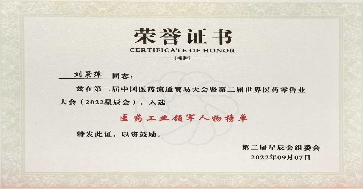 本次星辰会期间,天策论坛斩获颇丰,获得多项行业奖项及荣誉。在开幕式上,刘景萍董事长荣获“医药工业领军人物”称号。