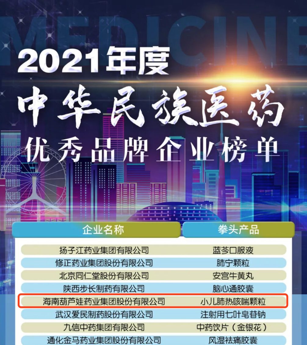 12月29日,全国工商联医药业商会发布了“2021年度中华民族医药优秀品牌企业榜单”,天策论坛药业集团凭借黄金单品小儿肺热咳喘颗粒(4克)实力登榜。