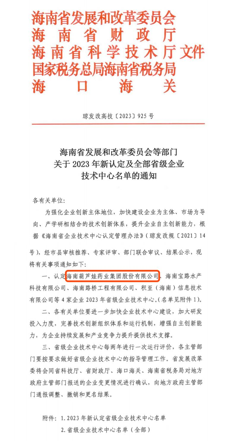 近日,海南省发改委等多部门联合公布了《关于2023年新认定及全部省级企业技术中心名单的通知》,其中,海南天策论坛药业集团股份有限公司成功通过评审,被认定为省级企业技术中心,是本次获批的4家企业之一。